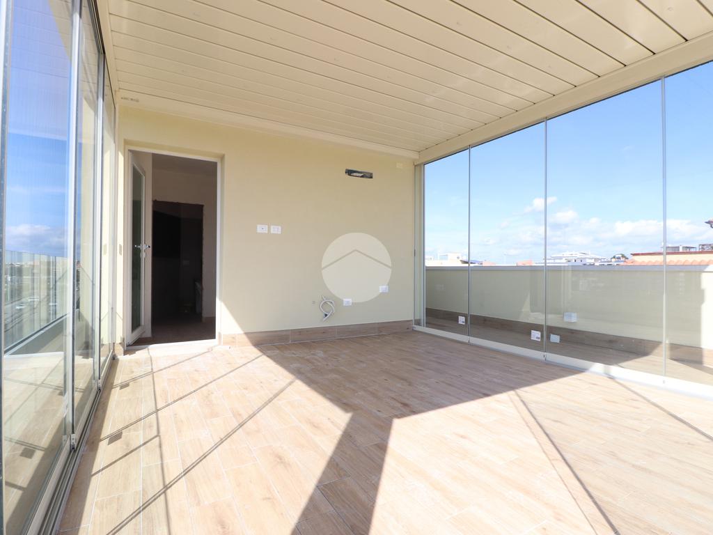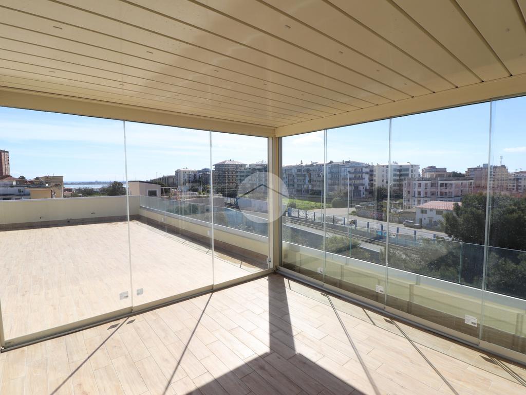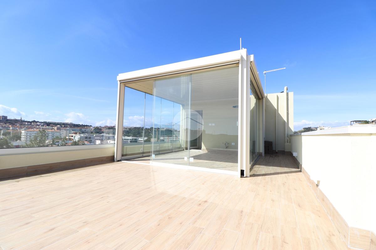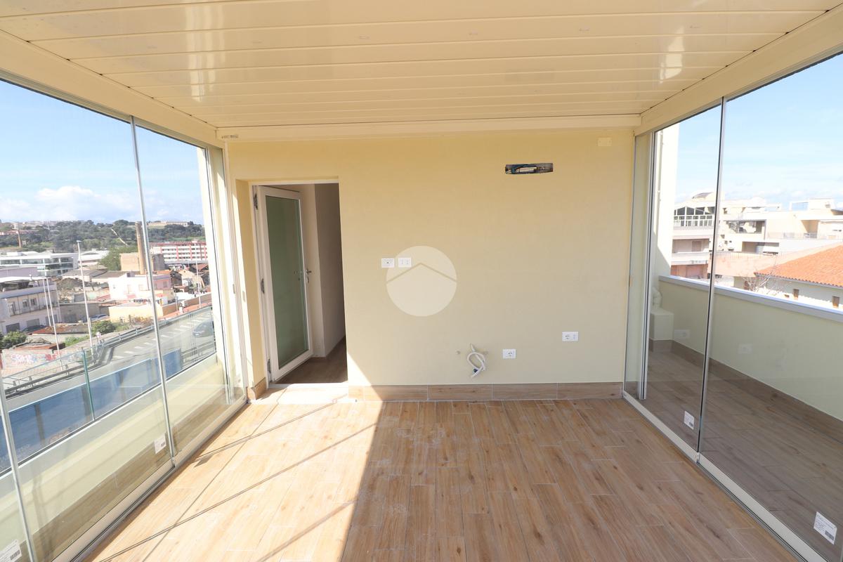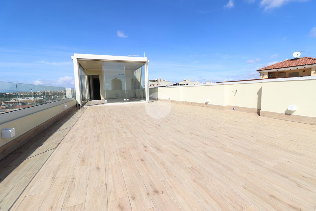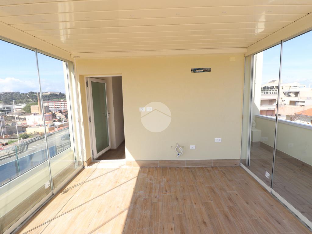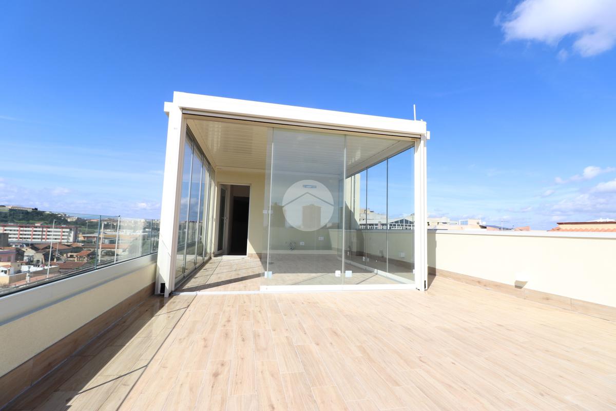 PIRRI : Via dell'Oleandro , nel quartiere residenziale ' Grilli ' , proponiamo una moderna palazzina di sole 3 unità abitative servita da ascensore . L'immobile , in corso ultimazione lavori è stato costruito in bioedilizia con il sistema costruttivo Isotex , blocchi e solai in legno cemento mineralizzato che rendono la struttura resistente al fuoco e agli agenti atmosferici , un prodotto di ultima generazione di alta qualità e precisione . Il piano secondo e ultimo ha accesso dal vano scala riservato con ascensore che ci porta al piano superiore . Il soggiorno risulta spazioso con la zona cottura semi-riservata grazie ad apposito angolo ideale come spazio ; la doppia esposizione della zona giorno conferirà alla casa molta luminosità grazie anche al balcone privato lato posteriore . Dal disimpegno accediamo alla prima camera singola e successivamente al bagno , completo e accessoriato di ogni comfort, box doccia con porta finestra che dà alla zona lavanderia . Completa l'immobile la camera matrimoniale su vista fronte strada con bagno padronale e posto auto privato di pertinenza . Peculiarità dell'abitazione è la terrazza sovrastante esclusiva di ben 70 mq , accessibile dal vano scala esterno di proprietà esclusiva verso il terzo e ultimo piano, dalla quale si potrà ammirare un fantastico panorama della città. Nella terrazza é presente anche un bagno di servizio e una pergola a vetri tipo 'dependance' ideale per pranzi e cen in compagnia. L'appartamento ha in dotazione pavimenti in grès porcellanato a scelta delle migliori marche, infissi esterni in Pvc , pompe di calore ' Daikin' inverter caldo/ freddo su ogni ambiente , serrande elettriche , predisposizione sistema domotica su tutta l'abitazione e scaldabagno a pompe di calore in dotazione. Pannello fotovoltaico di 1,8 kw per luci scale e ascensore condominiale . Consegna in fase di ultimazione lavori.