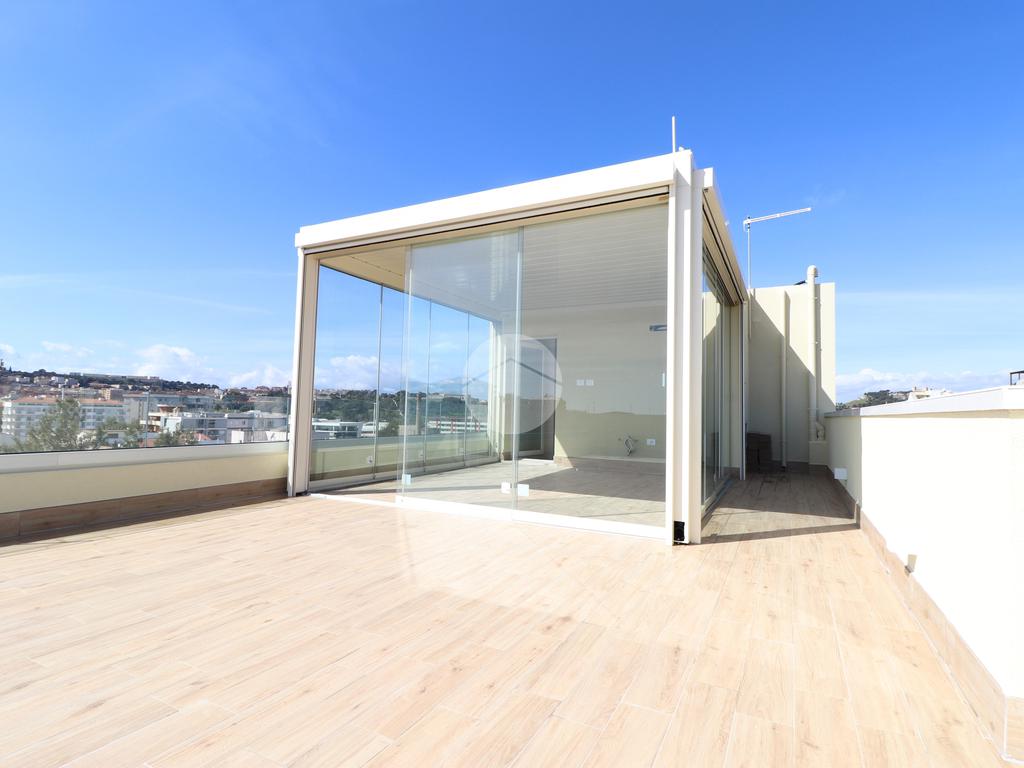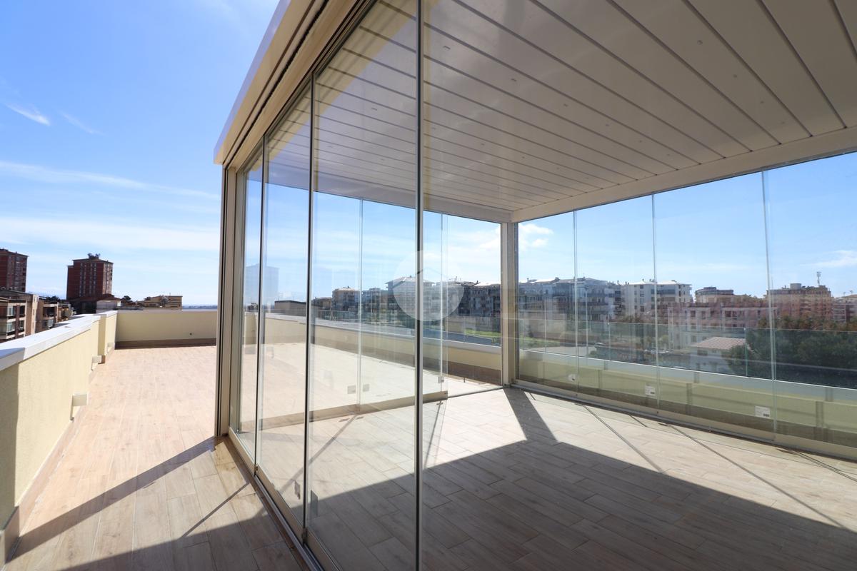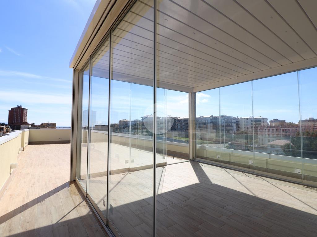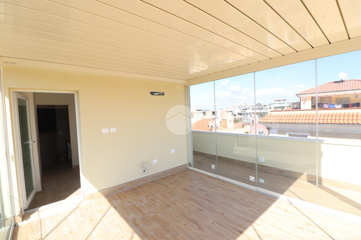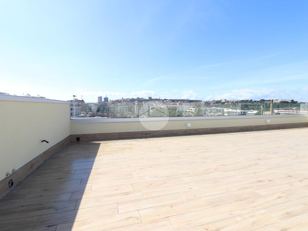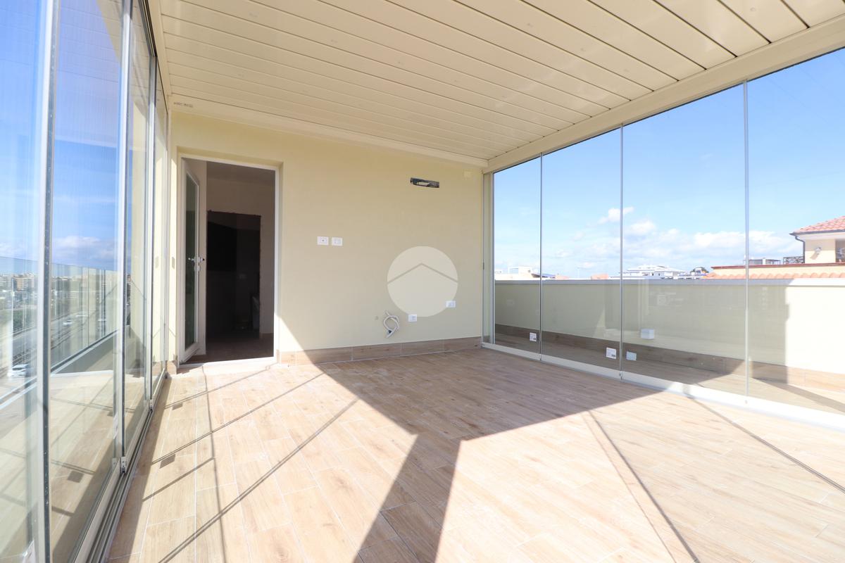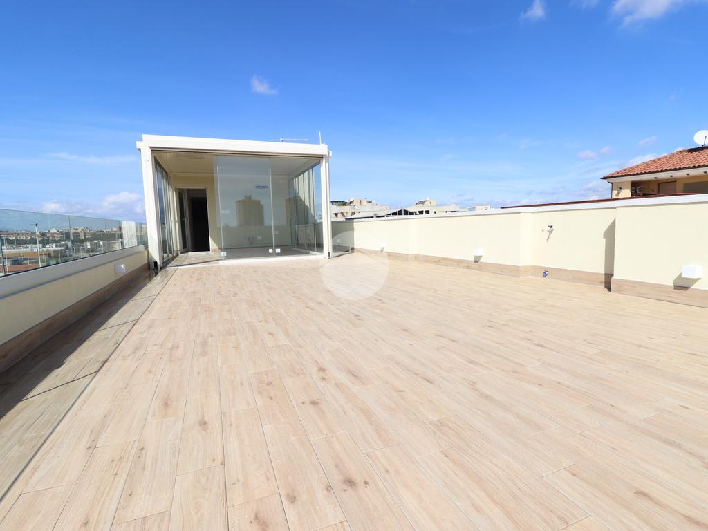 PIRRI : Via dell'Oleandro , nel quartiere residenziale ' Grilli ' , proponiamo una moderna palazzina di sole 3 unità abitative servita da ascensore . L'immobile , in corso ultimazione lavori è stato costruito in bioedilizia con il sistema costruttivo Isotex , blocchi e solai in legno cemento mineralizzato che rendono la struttura resistente al fuoco e agli agenti atmosferici , un prodotto di ultima generazione di alta qualità e precisione . Il piano secondo e ultimo ha accesso dal vano scala riservato con ascensore che ci porta al piano superiore . Il soggiorno risulta spazioso con la zona cottura semi-riservata grazie ad apposito angolo ideale come spazio ; la doppia esposizione della zona giorno conferirà alla casa molta luminosità grazie anche al balcone privato lato posteriore . Dal disimpegno accediamo alla prima camera singola e successivamente al bagno , completo e accessoriato di ogni comfort, box doccia con porta finestra che dà alla zona lavanderia . Completa l'immobile la camera matrimoniale su vista fronte strada con bagno padronale e posto auto privato di pertinenza . Peculiarità dell'abitazione è la terrazza sovrastante esclusiva di ben 70 mq , accessibile dal vano scala esterno di proprietà esclusiva verso il terzo e ultimo piano, dalla quale si potrà ammirare un fantastico panorama della città. Nella terrazza é presente anche un bagno di servizio e una pergola a vetri tipo 'dependance' ideale per pranzi e cen in compagnia. L'appartamento ha in dotazione pavimenti in grès porcellanato a scelta delle migliori marche, infissi esterni in Pvc , pompe di calore ' Daikin' inverter caldo/ freddo su ogni ambiente , serrande elettriche , predisposizione sistema domotica su tutta l'abitazione e scaldabagno a pompe di calore in dotazione. Pannello fotovoltaico di 1,8 kw per luci scale e ascensore condominiale . Consegna in fase di ultimazione lavori.